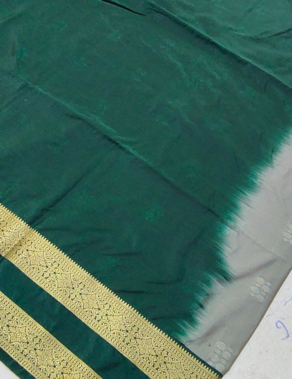 Coin chain motifs with Rettapet border cool grey colour soft silk